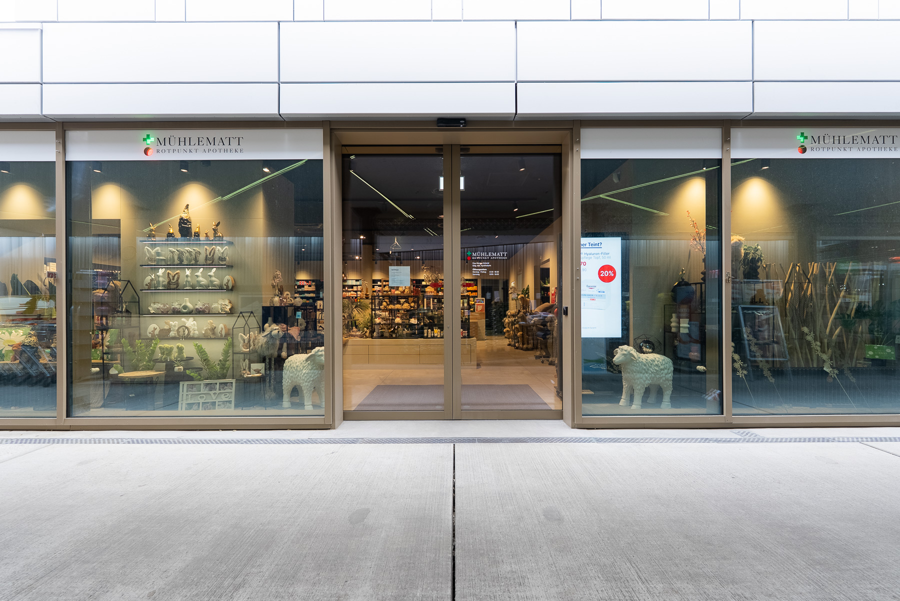 Unsere Apotheke befindet sich in zentraler Lage im Einkaufszentrum Mühlematt Shopping. Das Einkaufzentrum Mühlematt bietet die Möglichkeit, dass Sie ihr Auto parkieren können.